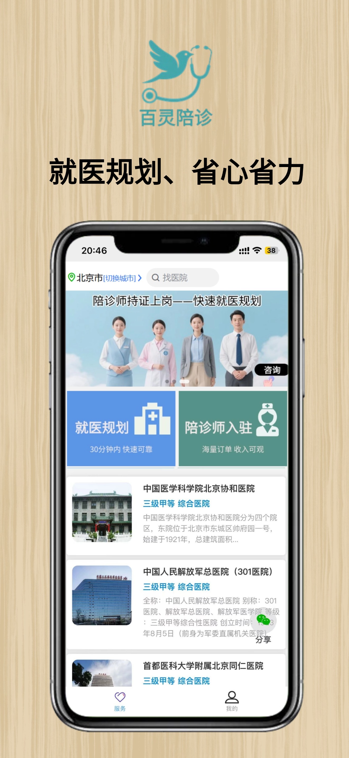 - 深度陪同北京、上海、广州等城市三甲医院(协和、301、北医三院、积水潭、天坛、安贞、东肿、北肿、儿童医院、北大一院、北大人民、中日友好、阜外、宣武等)